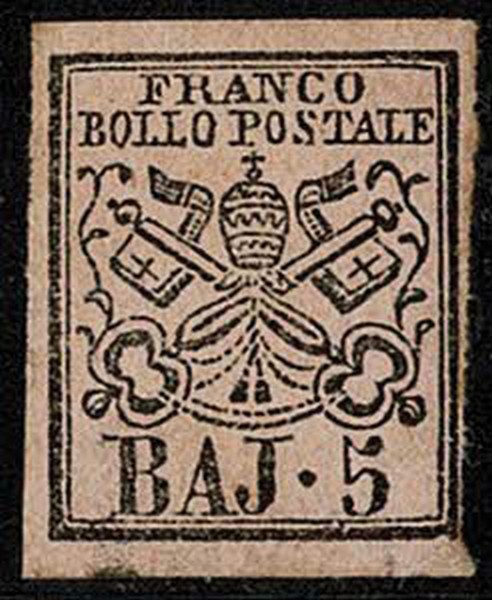 * ESTADOS PONTIFICIOS – 6 – Goma original e pontos de ferrugem – 425 Euros pelo catalogo Sassone. Margem direita semi irregular