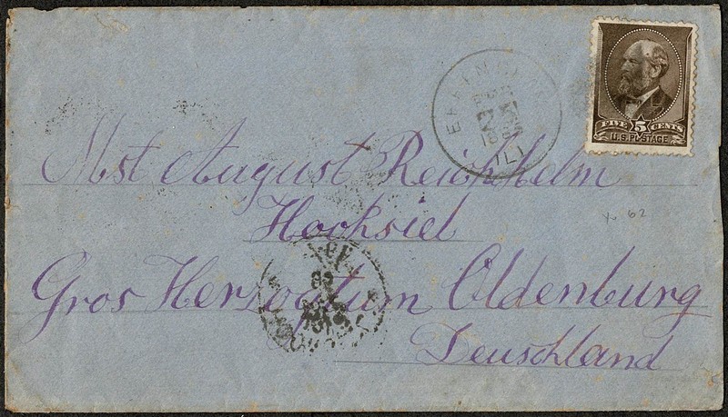 ESTADOS UNIDOS – HISTÓRIA POSTAL – Ano 1885 – Envelope circulado para a Alemanha, com transito chegada. Selo Yvert 62.