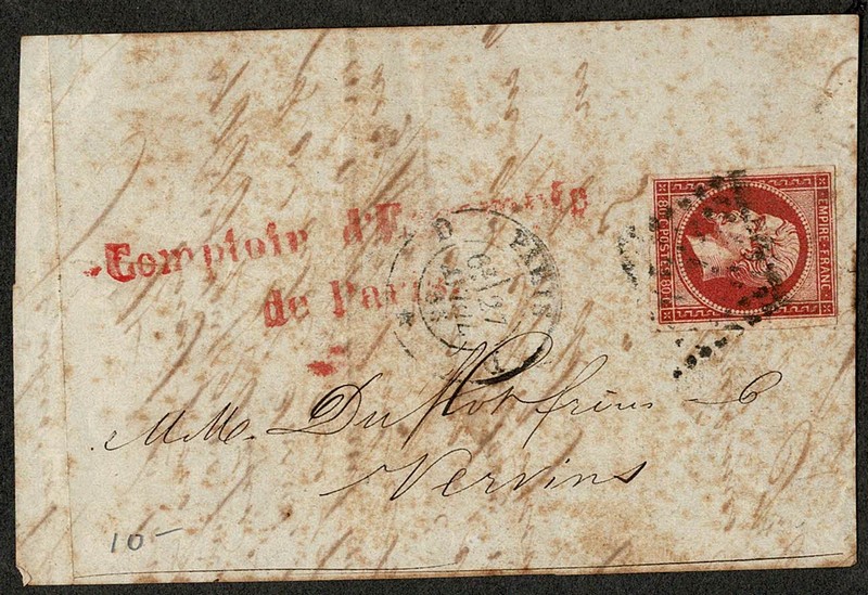 FRANÇA – 17A – Sobre grande fragmento de envelope. Carimbo de pontos – 65 Euros .