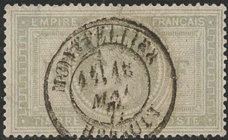 FRANÇA – ◉ 33 – 5F Napoleão – Carimbo circular. Adelgaçamento em 3 locais. Ainda bem apresentável visualmente (1.100 Euros).