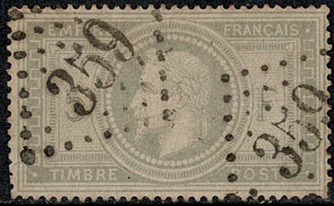 FRANÇA ◉ 33 – 5F Napoleão – Carimbo numeral 359. Sem defeitos, apenas parcialmente repicotado no lado esquerdo – 1.100 Euros…