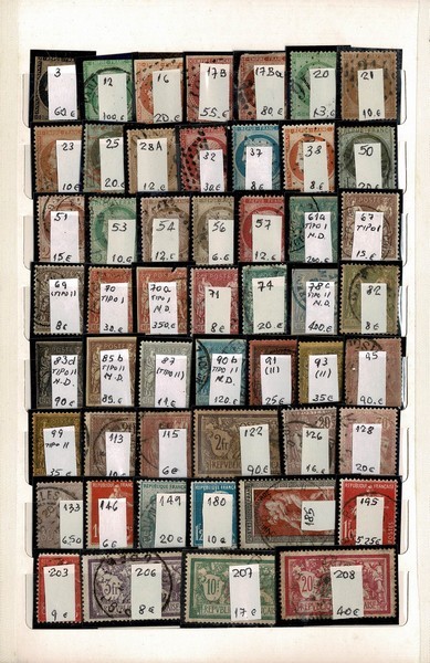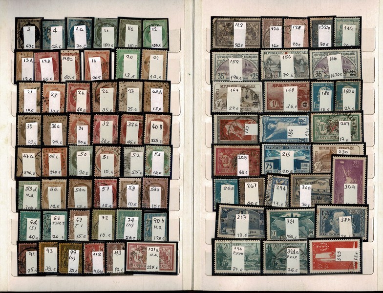 FRANÇA – 2 CLASSIFICADORES – 2 Classificadores médios do tipo “abre e fecha” com quase 250 selos, começando na 1ª série e até a década de 80. Todos os selos tem valor igual ou bem superior à 5 Euros de catálogo. Apenas um ou outro sem carimbo. Todos em protetores e etiquetados. Vimos alguns, onde seguramente o picote foi cortado de forma “fraudulenta” para valorizar o selo e além disto a qualidade de boa parte dos selos clássicos, fica a desejar. Segundo o proprietário, tem 8.600 Euros. Lembrando que o comprador está ciente da descrição do lote, que está sendo vendido “como visto”…