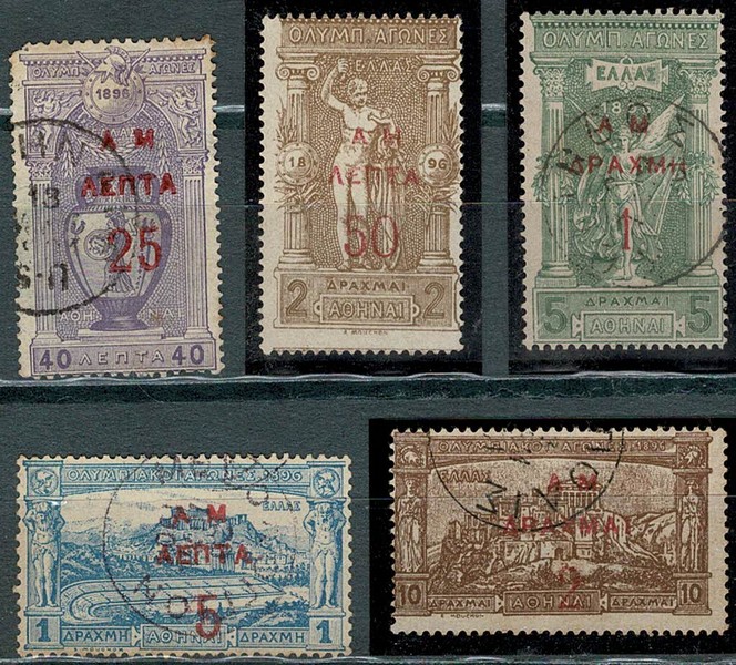 GRÉCIA ◉ 141/145 – Série completa. No nº 142 falta 1 picote no canto superior esquerdo e o nº 143 está novo sem goma – 500 Euros