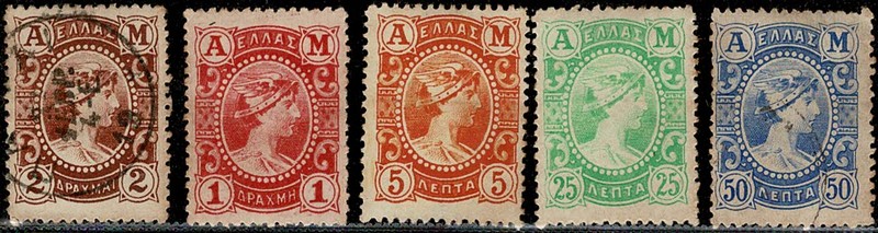 */◉ GRÉCIA – 160/164 – Nºs 160, 161 e 163 * – nºs 162 e 164 ◉ – 134 Euros