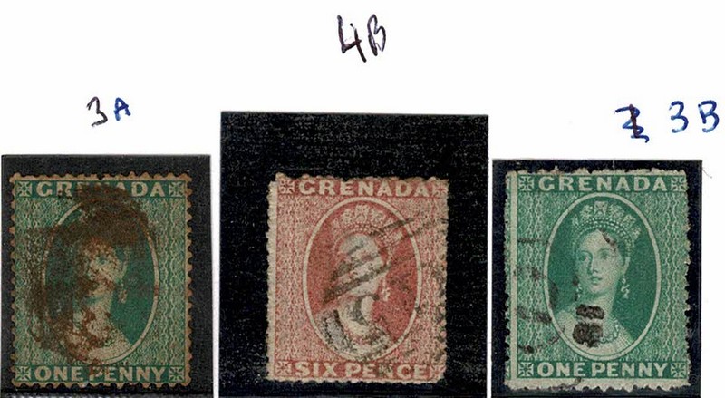 ◉ GRENADA – 3A (carimbo borrado e imperceptível furinho) 3B e 4B – 115 Euros.