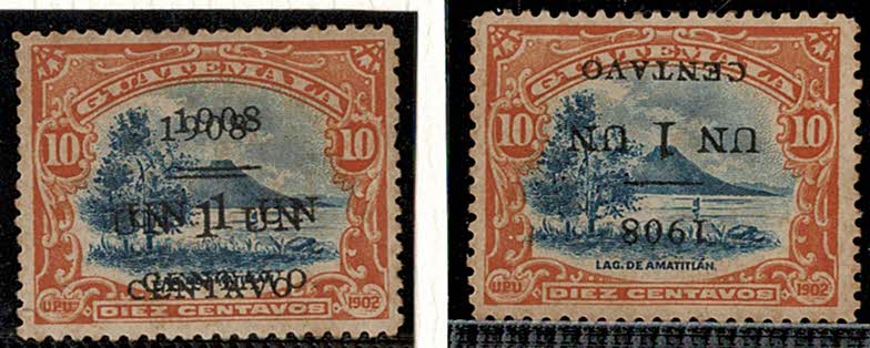 GUATEMALA (*) Yvert 138a e 138b – Os 2 com variedades na sobrecarga: DUPLA e INVERTIDA – 75 Euros