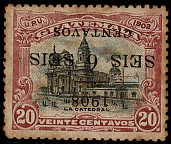 GUATEMALA * Yvert 140 com variedade: SOBRECARGA INVERTIDA. Pontos de ferrugem acentuados