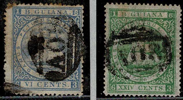 GUIANA BRITÂNICA ◉ Yvert 30 e 31 – Ambos com picotagem fina conforme imagem.