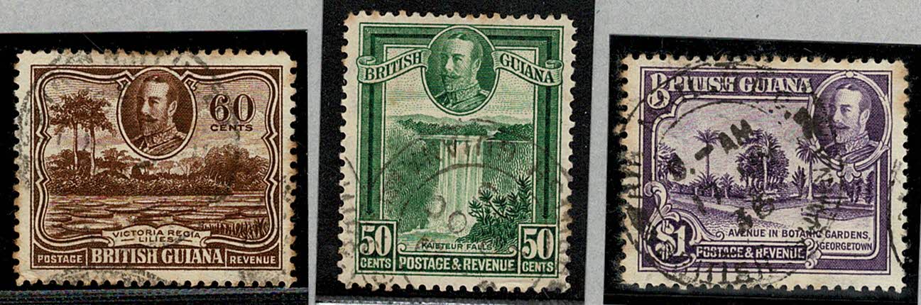 GUIANA BRITÂNICA ◉ Yvert 150, 151 e 154 – Pontos de ferrugem – 139 Euros.