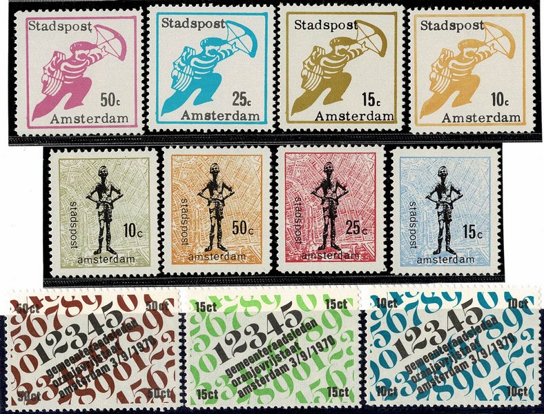 (*) HOLANDA – SELOS LOCAIS – Cidade de Amsterdã – Alguma Greve Postal ? Época ? Correio Local ? 3 diferentes séries, duas com 4 valores e uma com 3 valores (esta datada em 1970) Total 11 selos.