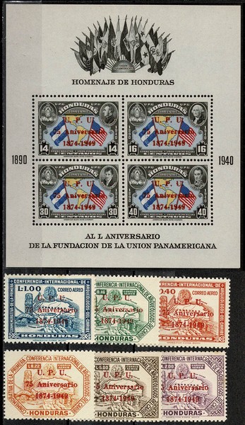 */** HONDURAS – Aéreos 181/86 Bloco 3 (UPU) – Série completa – 103 Euros.