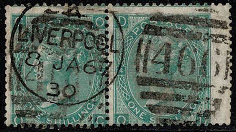 ◉ INGLATERRA – 31 (Plancha 4) Par horizontal com carimbo circular numeral 466. Selo direito com margem larga direita – 460 Euros .