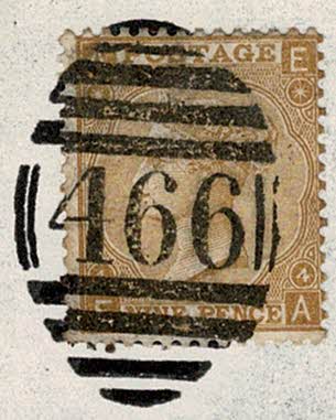 ◉ INGLATERRA – 35 (Plancha 4) Carimbo “466” montado em suporte – 200 Euros.
