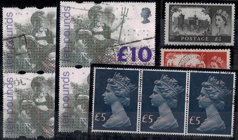 INGLATERRA ◉ 503, 505, 824 (trinca) e 1664 (2 pares) Só selos com alto facial – 106 Euros.