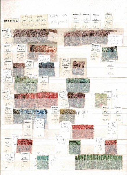 INGLATERRA ◉ SÓ REGULARES – Classificador com cerca de 2.000 selos usados, grande maioria separados pelos tipos. Desde emissão Vitória (dos + baratos) até começo da emissão Machin