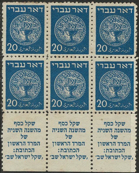 ISRAEL (*) 5 – Bloco de 6 horizontal com tab completo na trinca inferior – 240 Euros