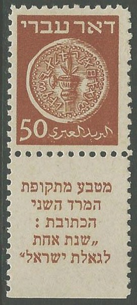 ** ISRAEL – 6d – Papel cinza – Tab – Luxo – 500 Euros