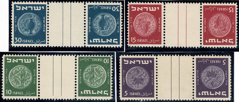 */** ISRAEL – 21/26 – Os 4 Tete Beches com intervalo, da série – 1 selo * e 3 selos ** – 125 Euros . Temática Vinho.