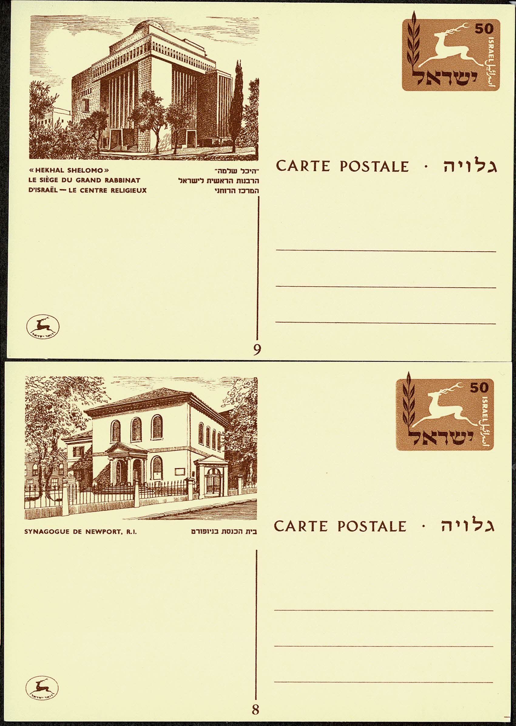ISRAEL – Anos 70 ? – 2 Inteiros Postais sem uso, figurando Sinagogas ..