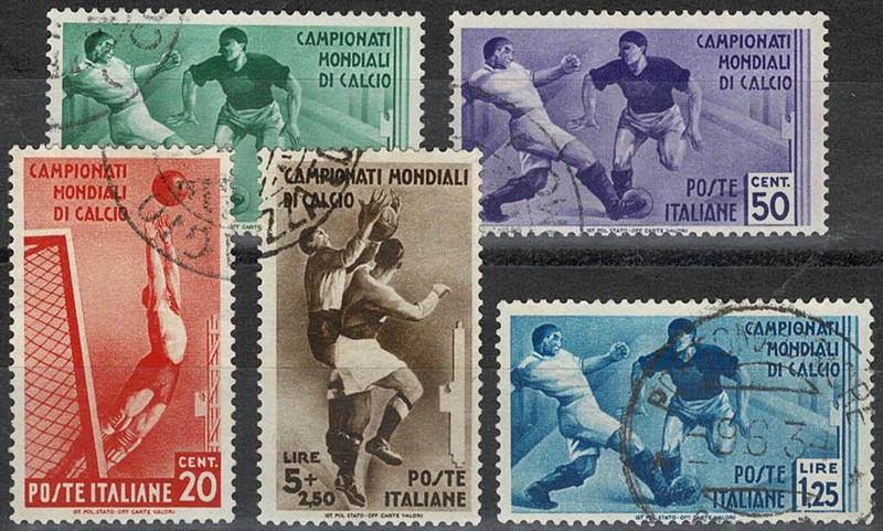 ITÁLIA ◉ 339/343 (Futebol) Série completa usada – 170 Euros no Yvert e 950 Euros do Sassone