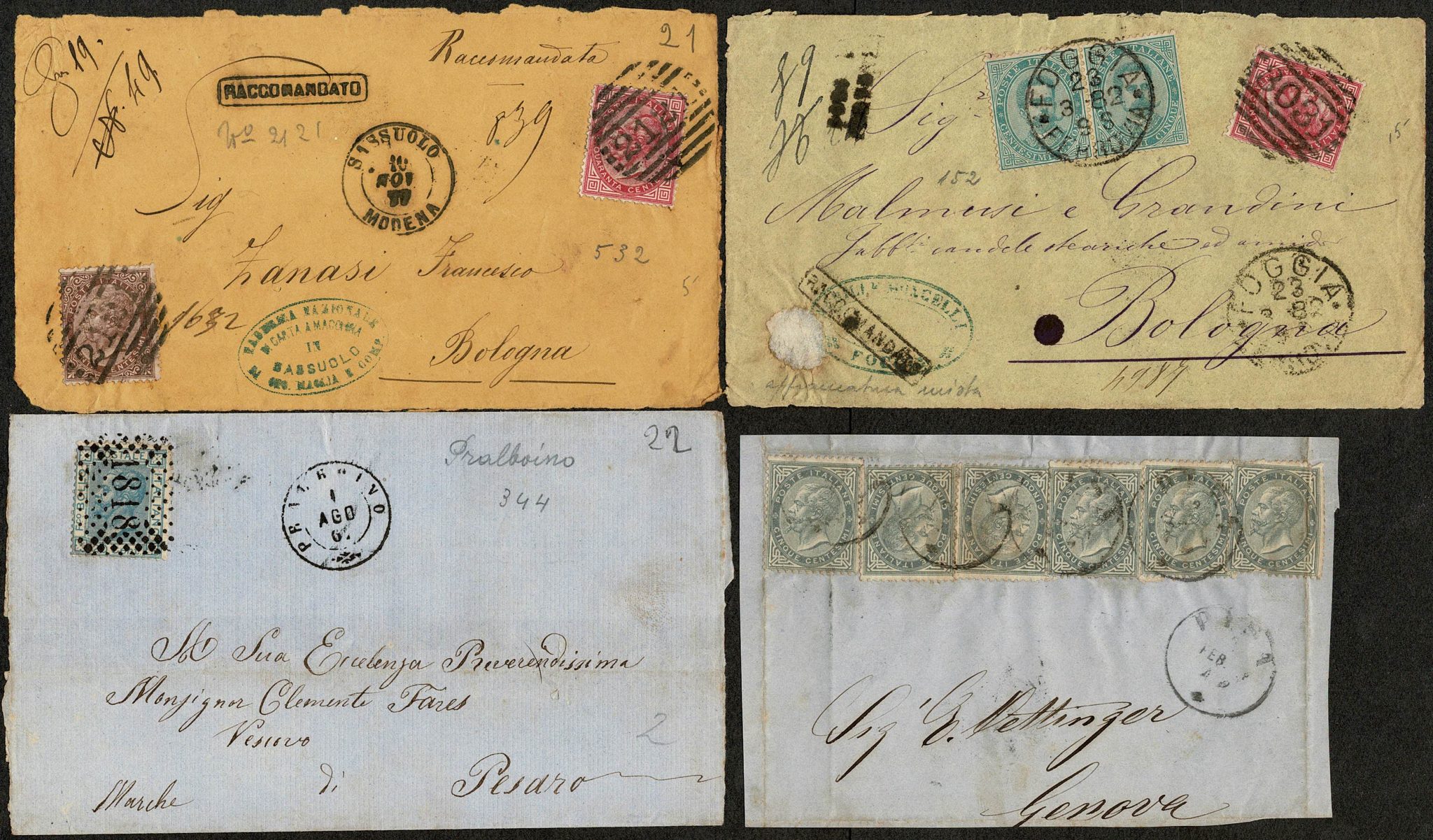 ITÁLIA – SOBRECARTAS CLÁSSICAS – Lote com 31 frentes de sobrecartas, circuladas internamente, todas do século 19 (quase todas dos anos 186…) e entre selos Yvert 11 e 33. Incluso franquias isoladas, mistas, múltiplas, bicolores, emissões diferentes