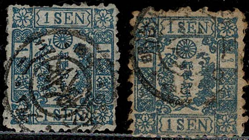 JAPÃO – ◉ 10 – 2 selos – Papel vergê e papel unido – 130 Euros…