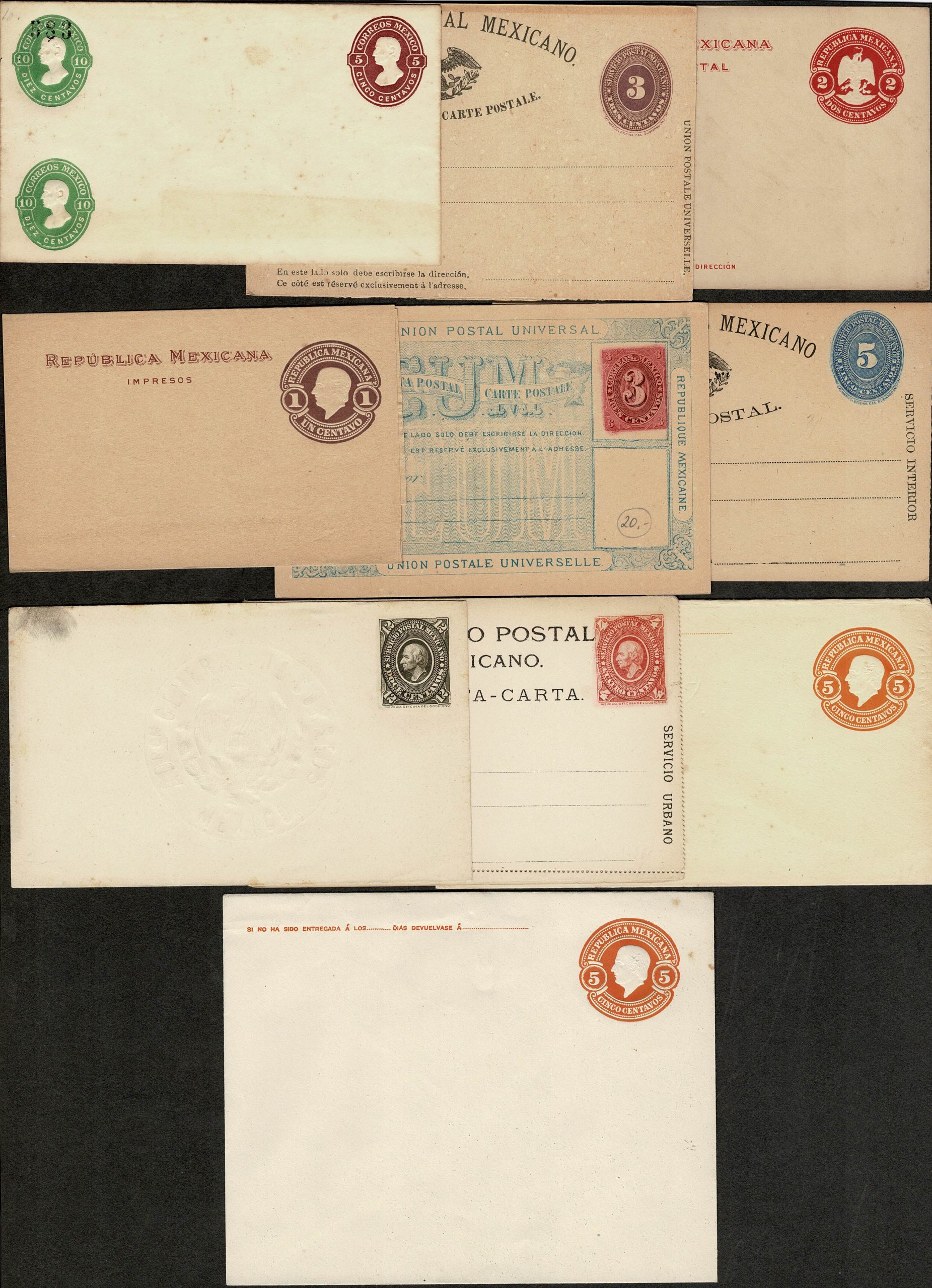 MÉXICO – INTEIROS POSTAIS – Lote com 10 diferentes sem uso. Século 19/começo do 20. Todos em ótima qualidade