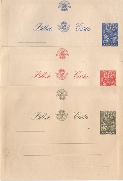 MOÇAMBIQUE – Ano 1950 – Ano Santo – 3 Inteiros postais sem uso, tipo Carta Bilhete em diferentes cores. Origem e qualidade européia