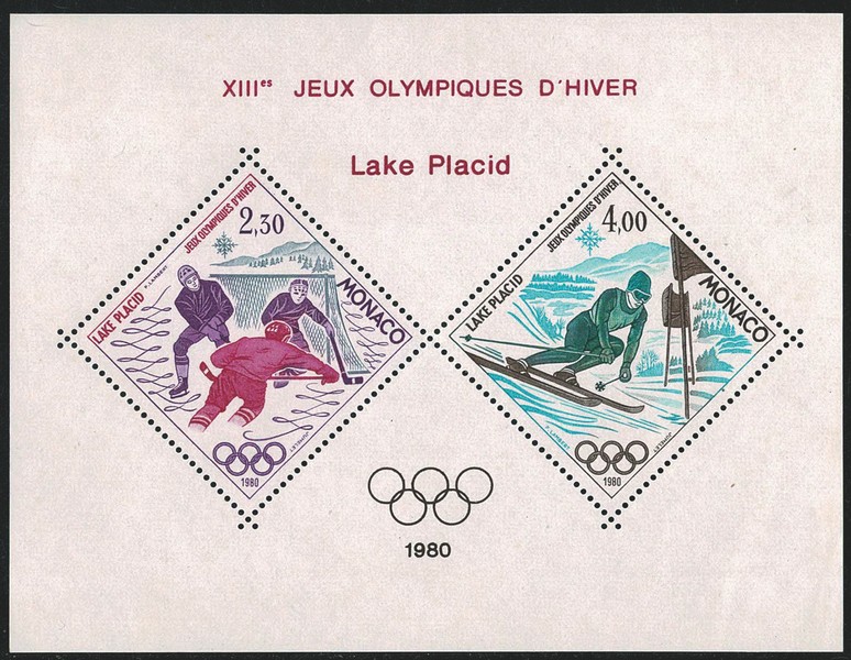 MÔNACO * 1222/1223 (Jogos Olímpicos de Inverno) em bloco especial que não consta do Yvert – 160 Euros pelo catalogo Michel
