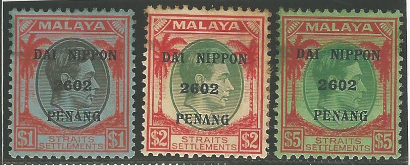 */ ◉ OCUPAÇÃO JAPONESA – PENANG – Stanley Gibbons J77/J89, faltando o barato J79 para estar completa – 637 Libras.