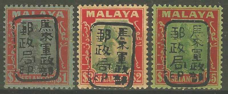 * OCUPAÇÃO JAPONESA – SELANGOR – Stanley Gibbons J206, J206a, J210, J210a, J211, J213, J213a, J214, J215, J216, J218 e J220/223 – 563 Libras