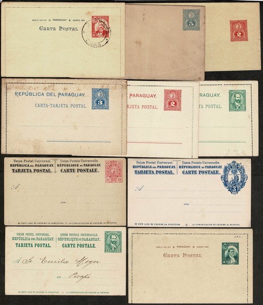 PARAGUAI – INTEIROS POSTAIS – Lote com 10 diferentes sem uso. Século 19/começo do 20. Parte em ótima qualidade
