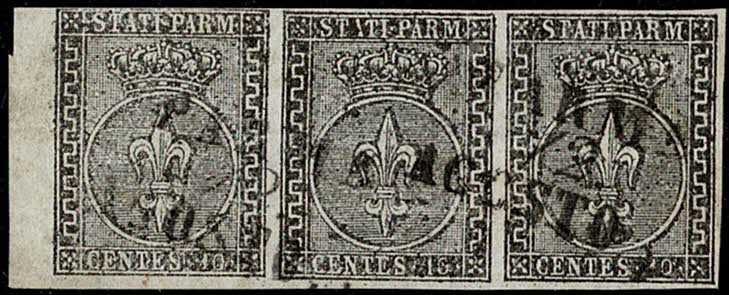 ◉ PARMA (Antigo Estado Italiano) Sassone 2 – Rara trinca horizontal, margem esquerda de folha. Vinco horizontal ao longo dela, só visivel pelo verso e em nada interferindo na beleza da peça – 250 Euros cada selo isolado !