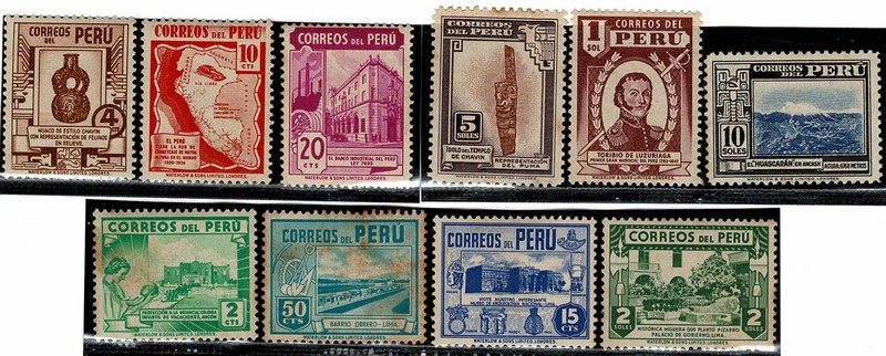 PERU * 356/365 – Série completa – 2 valores com pontos de ferrugem + acentuados e o último (*) – 70 Euros