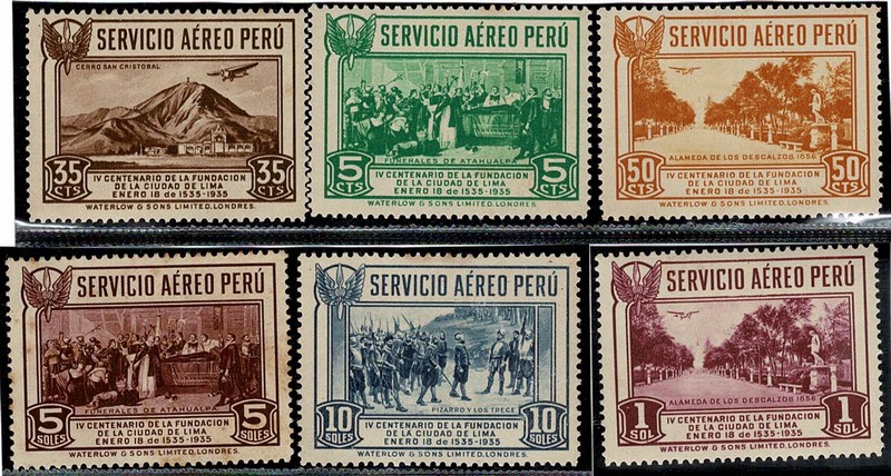 PERU */(*) Aéreos 6/12 – Série completa – 2 valores sem goma, sendo 1 deles com pontos de ferrugem + acentuados – 105 Euros.