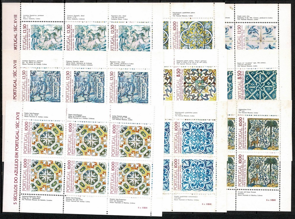 * PORTUGAL – FOLHINHAS BLOCOS – Conjunto com 17 itens DIFERENTES (1 Blocos repetido) e assim dividido: 11 folhas completas dos Azulejos da década de 80, parte com pontos de ferrugem 6 Blocos das décadas de 70/80 com pontos de ferrugem acentuados. Pede-se verificar quanto a qualidade