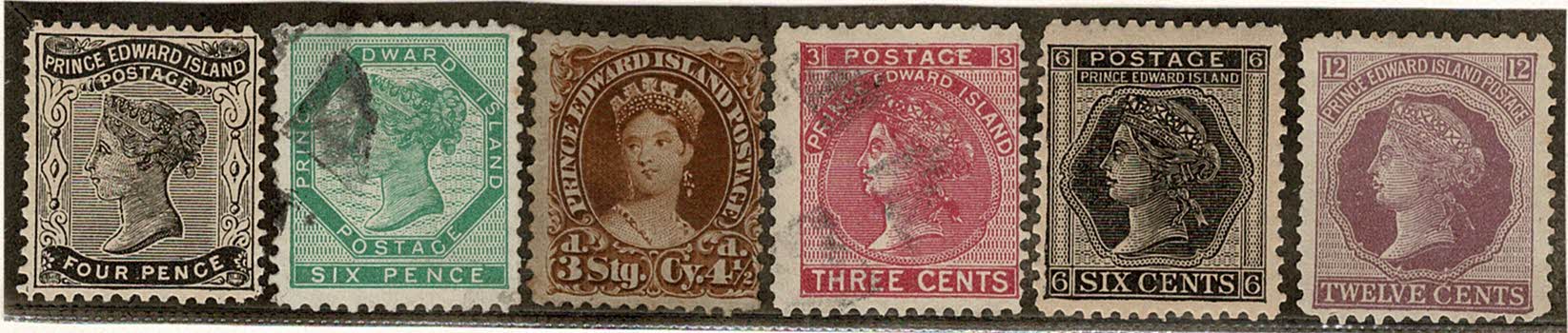 PRÍNCIPE EDUARDO ◉?/*/(*) 7 *, 8 usado ? , 10 sem goma e falta 1 picote, 13 usado ?, 15 * e 16 sem goma. Os carimbos não são garantidos..