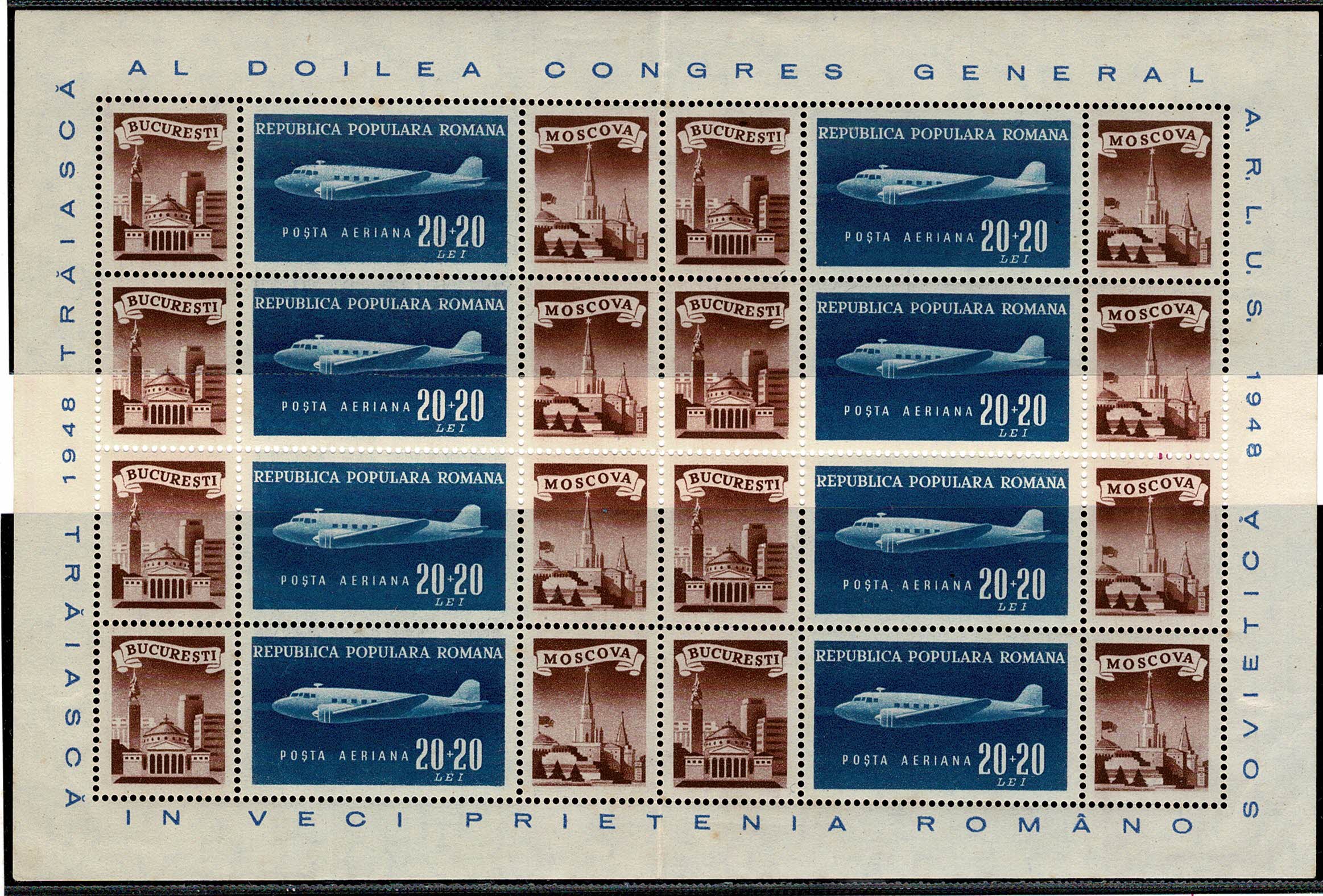 ROMÊNIA **/* Aéreo 50 – Mini folha completa com 8 selos com as vinhetas laterais – 112 Euros….