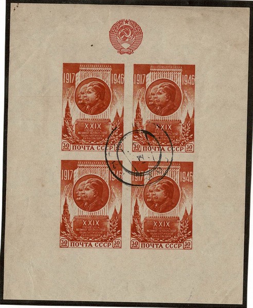 RUSSIA – ◉ Bloco 8 – Alguns pequenos vincos. Carimbo comum – 90 Euros.