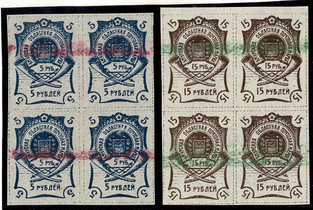 RÚSSIA – ANTIGAS REPÚBLICAS/TERRITÓRIOS/EXÉRCITOS ◉ BLAGOVIECHTCHENSK (Sibéria) Yvert 3 e 4 – Ambos em quadras !! com anulação em forma de traço….