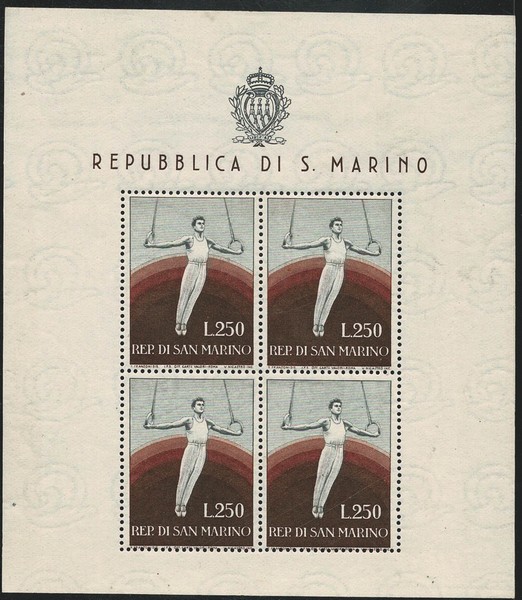 SÃO MARINO */** 393 (Esporte) – Mini folha com 4 selos – 450 Euros pelo Sassone