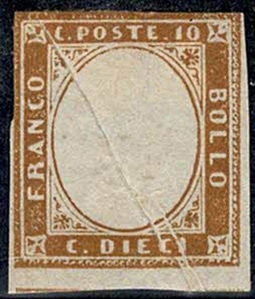 SARDENHA (Estado Italiano) (*) 11 – Variedade : Pliê diagonal e sem o relevo (miolo) 2 margens rente, 1 normal e 1 grande. Vendido sem garantias