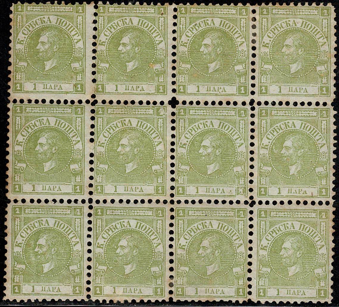 SÉRVIA * 4 – Raro bloco com 12 selos !!. Goma original e alguns pontos de óxido. Material só encontrado na Europa ..
