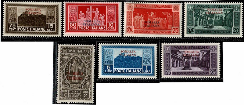 * SOMÁLIA ITALIANA – Sassone 123/129 – Yvert 120/126 – Limpos, só com charneira e sem ferrugem – 80 Euros pelo catálogo Sassone de 2004.