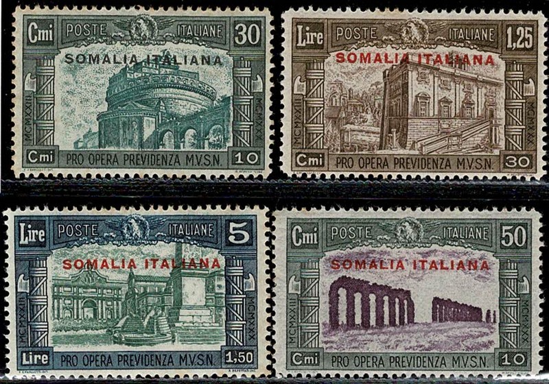 * SOMÁLIA ITALIANA – Sassone 140/143 – Yvert 135/138 – Limpos, só com charneira e sem ferrugem – 260 Euros pelo catálogo Sassone de 2004.