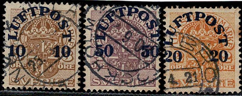 ◉ SUÉCIA – Aéreos 1/3 – 1ª série sérea completa – Pontos de ferrugem – 51 Euros.