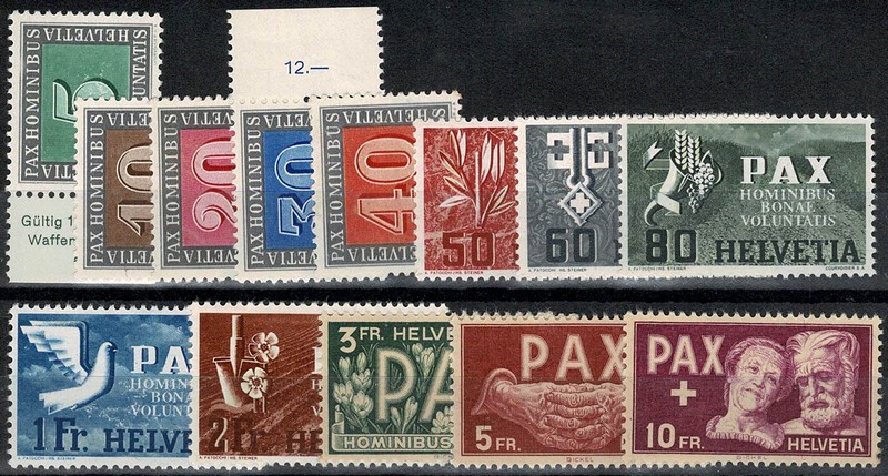 SUIÇA * 405/417 (PAX) – Série completa gomada, só com marca de charneira e sem ferrugem. Qualidade e origem europeia – 250 Euros