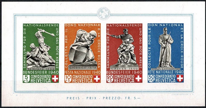 SUIÇA * Bloco 5 – Só com levíssima dupla marca de charneira e sem ferrugem – Qualidade e origem europeia – 250 Euros.