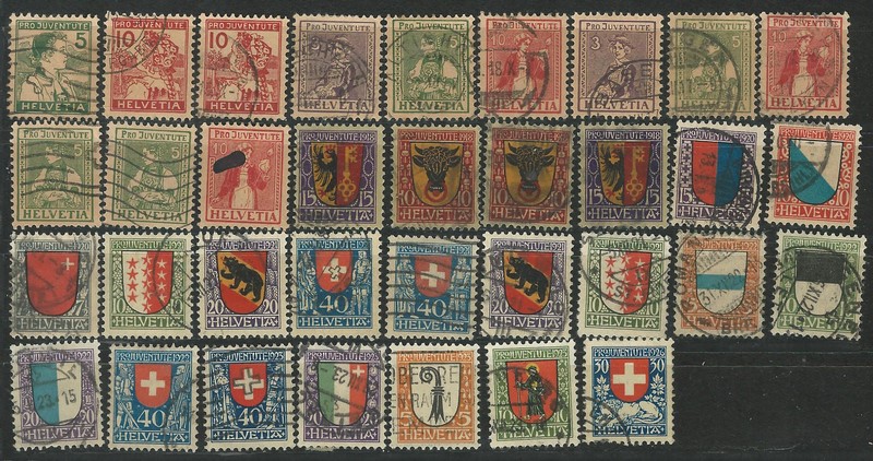 ◉ SUIÇA – Só PRÓ JUVENTUDE – Cartela com 34 selos, só entre anos 1915 e 1926. Maioria duplicados – 838 Euros. Lote 2258 da nossa última VSO, agora com 10% de desconto.