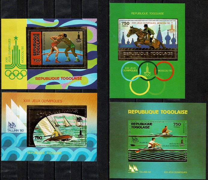 TOGO ** Blocos 137A/137D – Jogos Olimpicos de 1980 – nº 137A com pontos de ferrugem. Sem cotação no Yvert e 160 Euros no Michel.